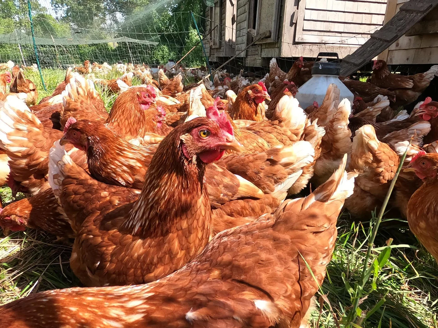 Marshview Farm uses mobile chicken coops as a way to fertilize areas of land in a rotating manner. I’ve written about the requirements for doing this on a veg-producing farm previously, but in short we follow them with extra buffer time. As a result, we also get eggs that can be sold to CSA members and market customers.
