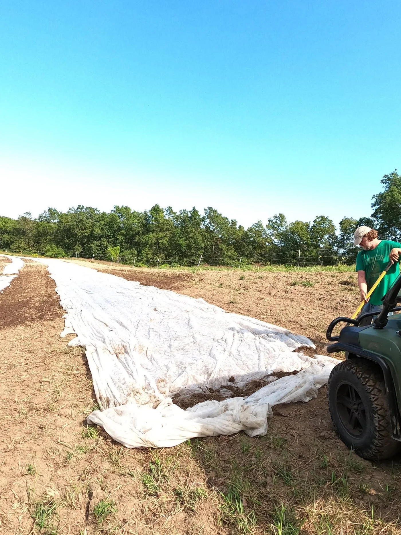- Row Cover Installation: Laid out row cover for tatsu yoi, carrots, and turnips, then dug it into the soil to secure it.