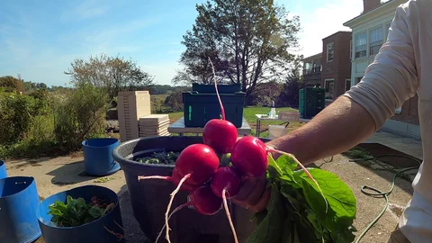 - Washing and Binning Radishes: Washed, sorted, and stored radishes.