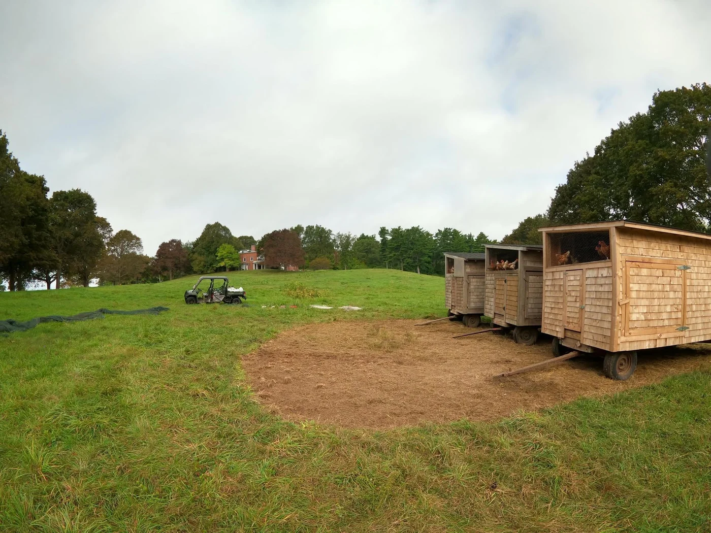 - Moved chicken coops to a new location, working with a tractor and another person.