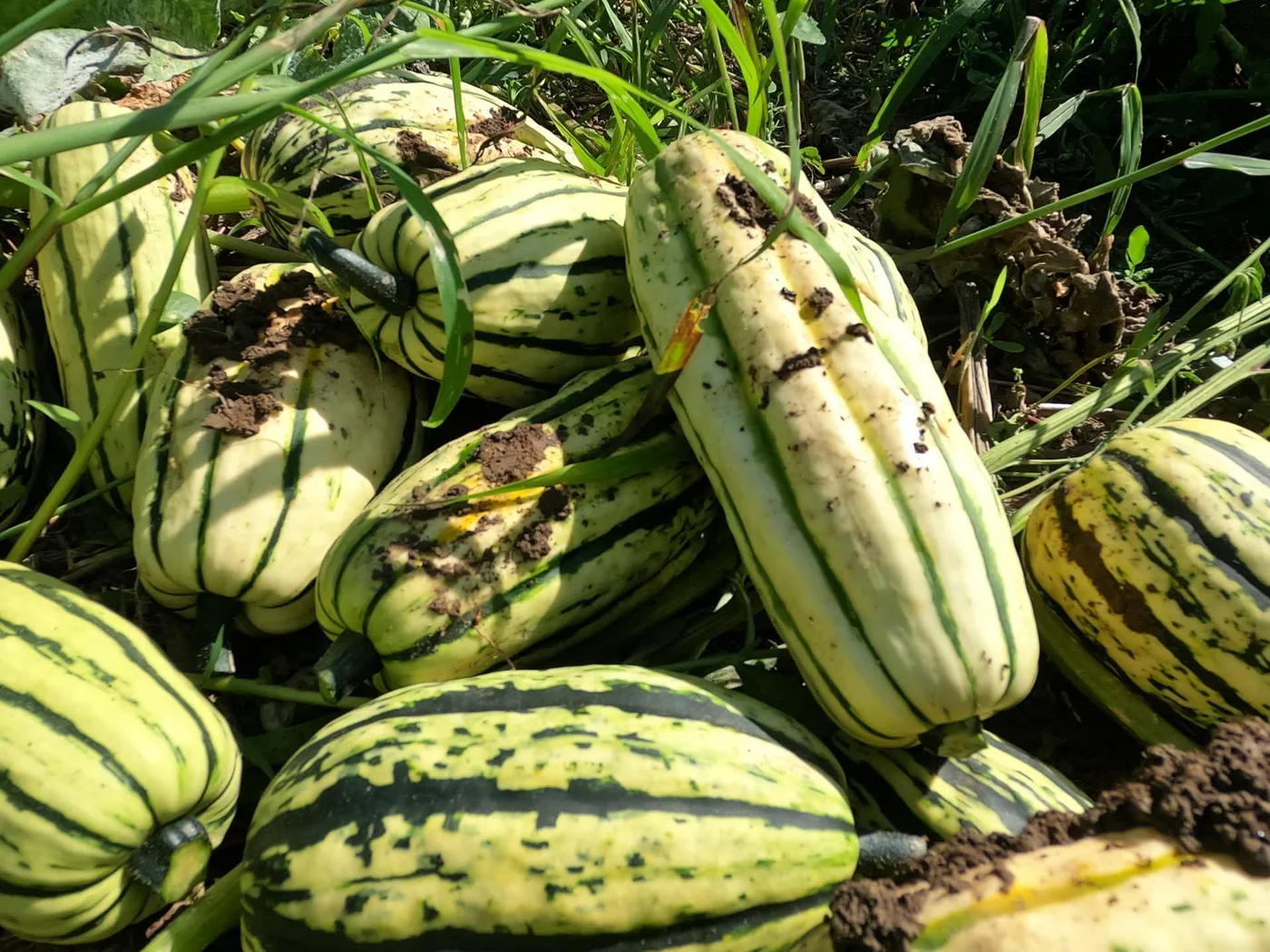 When we seeded these delicate ādelicataā squash on June 5th, planted them on July 9th and then weeded their beds throughout August, I had no idea how pretty they would be because I didnāt look them up. Itās so much more of a joy to see them in person for the first time. Looking them up in advance would help me with field identification and knowledge of how to best harvest them.