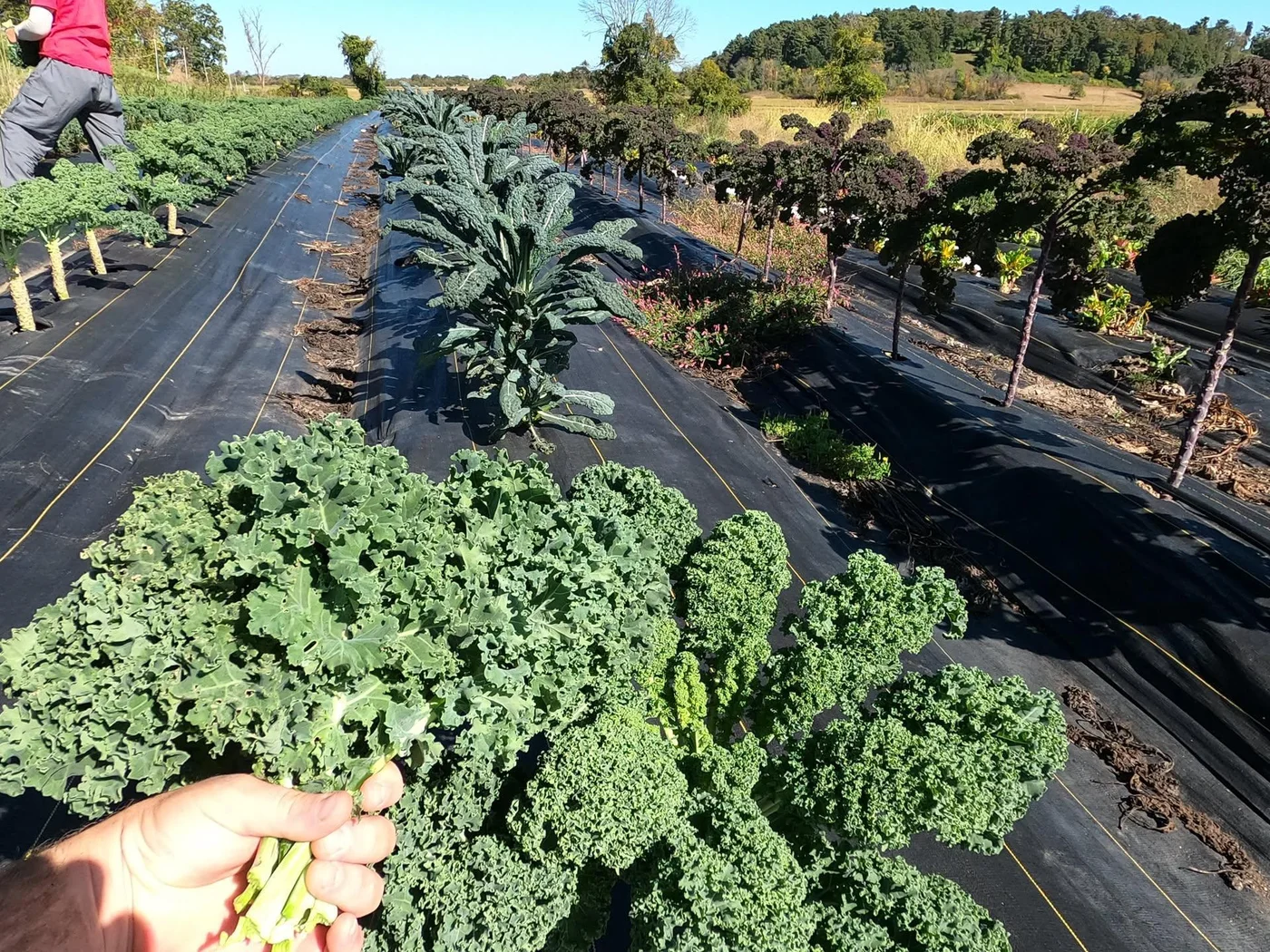 - Bunched kale for the CSA, ensuring proper leaf retention for photosynthesis.