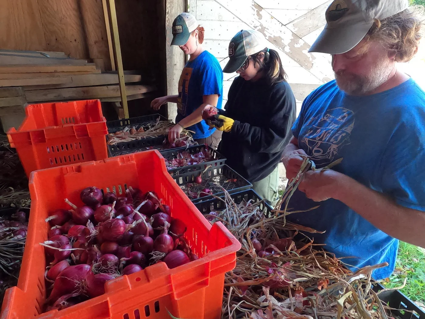 Today we harvested sungold cherry tomatoes, processed drying onions, I weeded carrots and helped with CSA distribution. The joy on peopleâs faces when they pick up their veg is kind of worth all the work to get it to them.