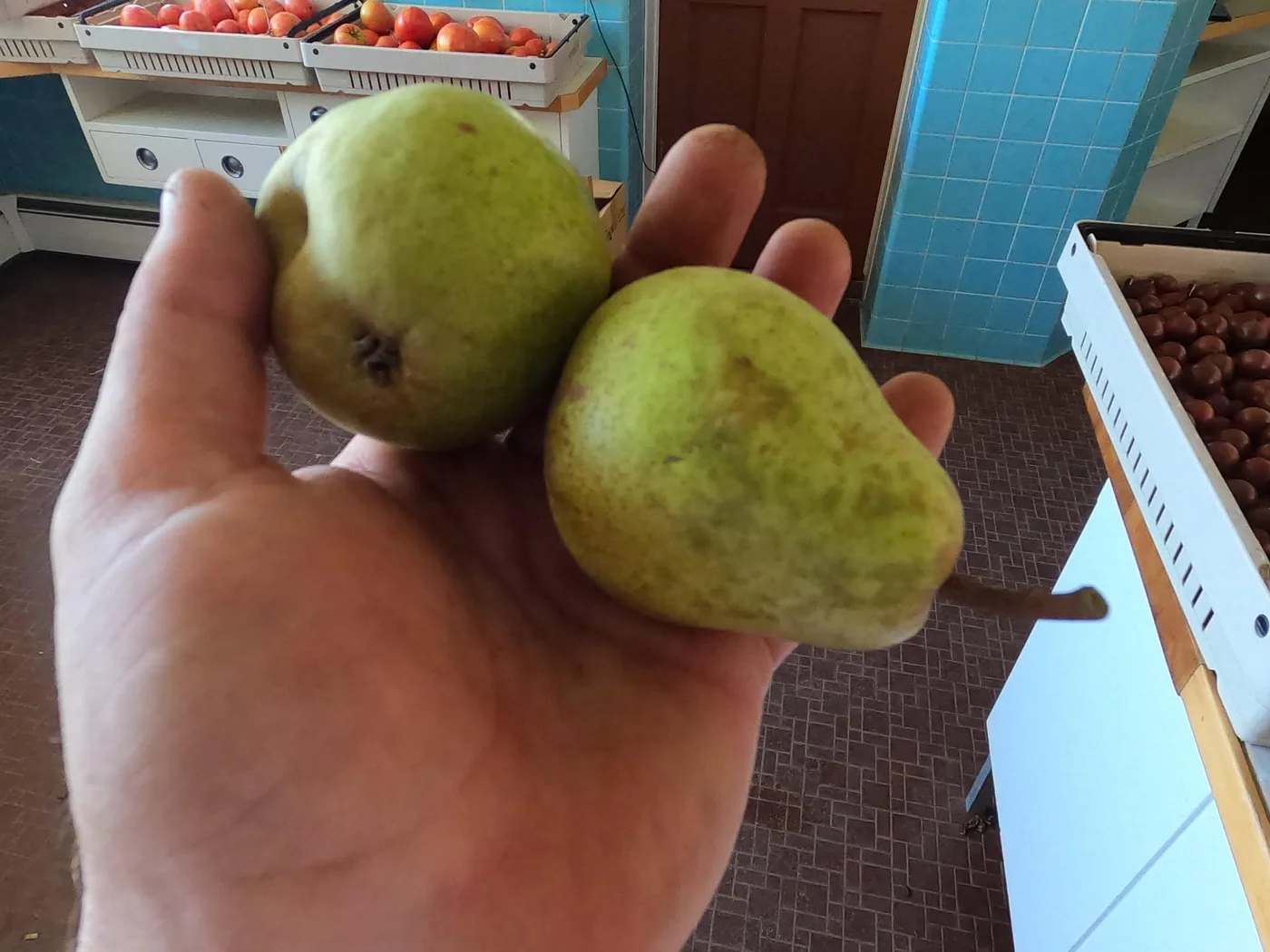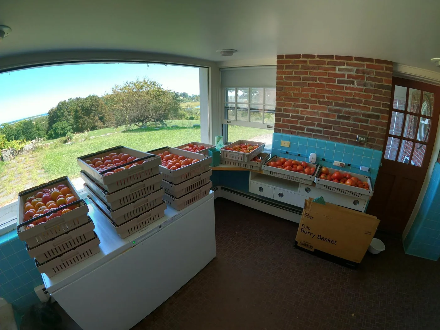 - Storage and Distribution: Storing tomatoes, pears, apples, and preparing produce for CSA pickup.