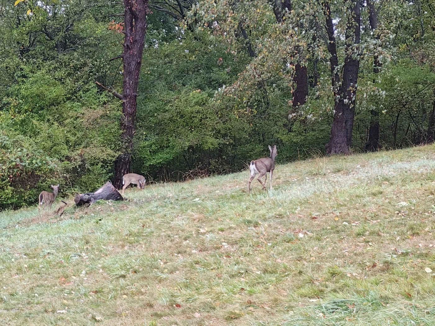 Today there was a noticeable increase in deer activity. Just about each drive from field to garage, we saw them from the road and hill. They just stood there and stared right back at us, but always in groups of at least three (at one point six). Many of them are not yet adult size and may not have earned a healthy fear of humans. I’m surprised that we haven’t also seen more coyotes recently.