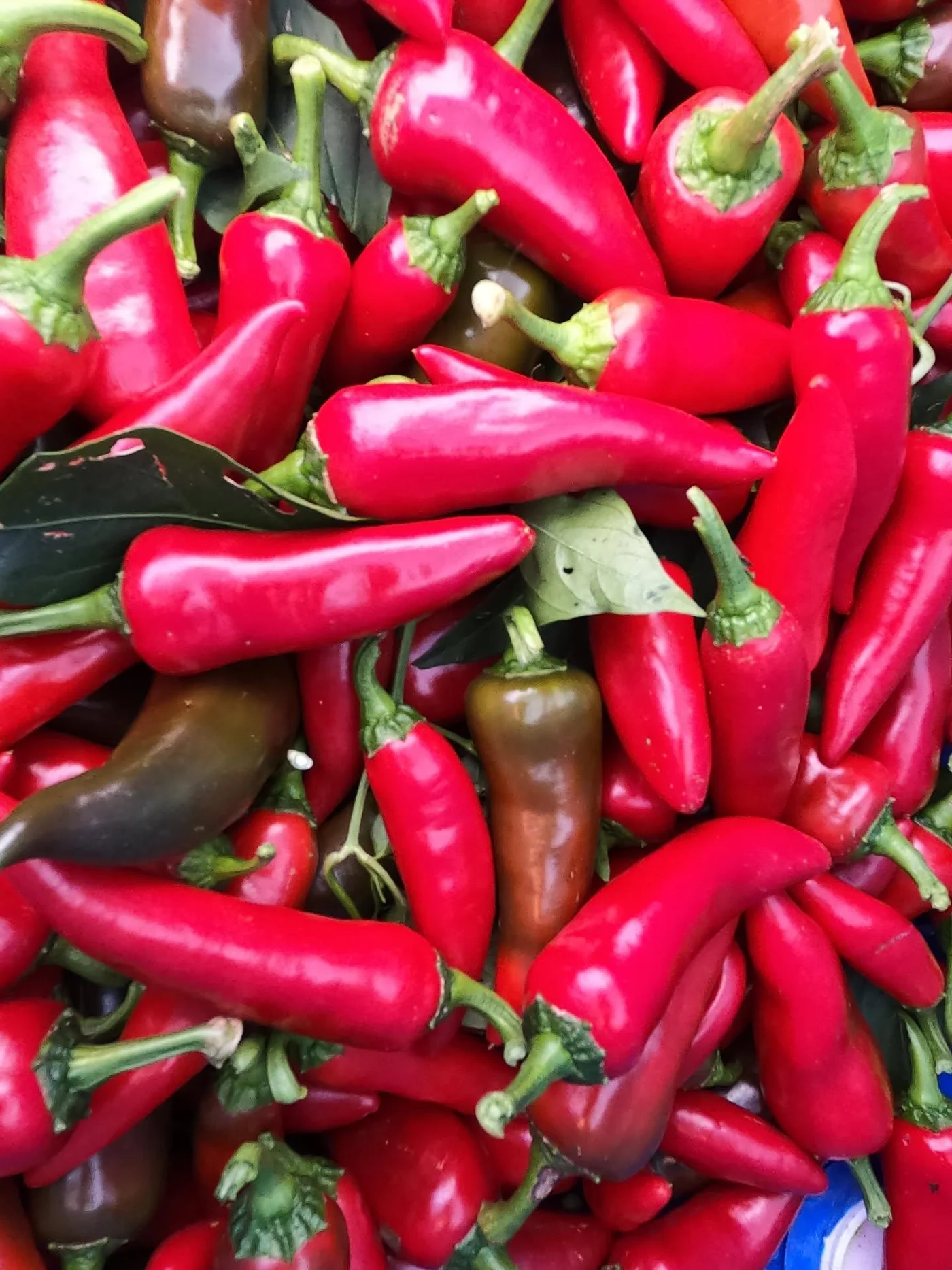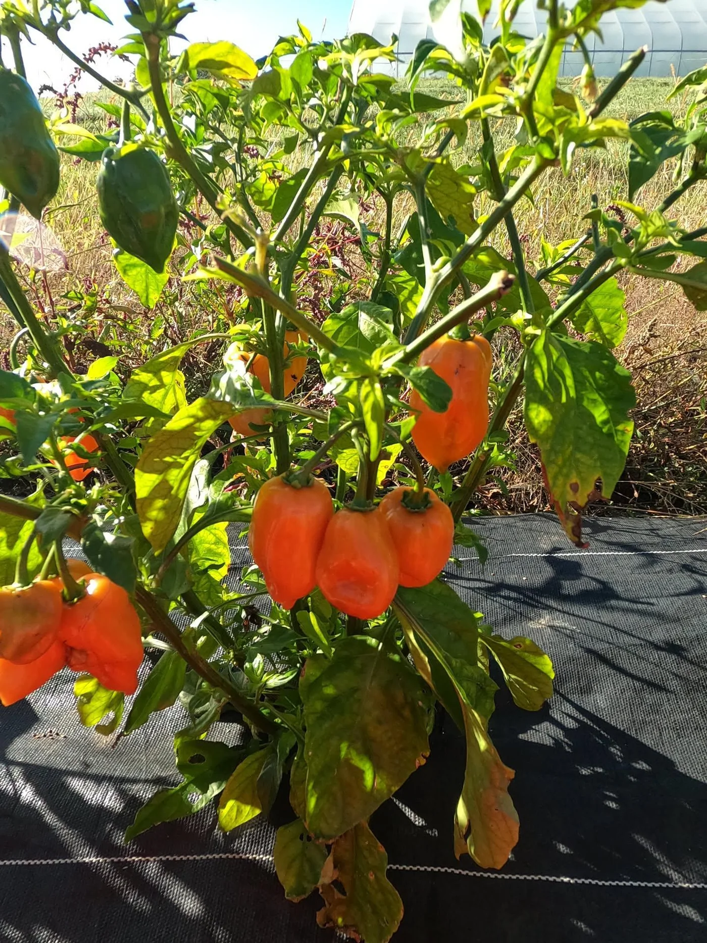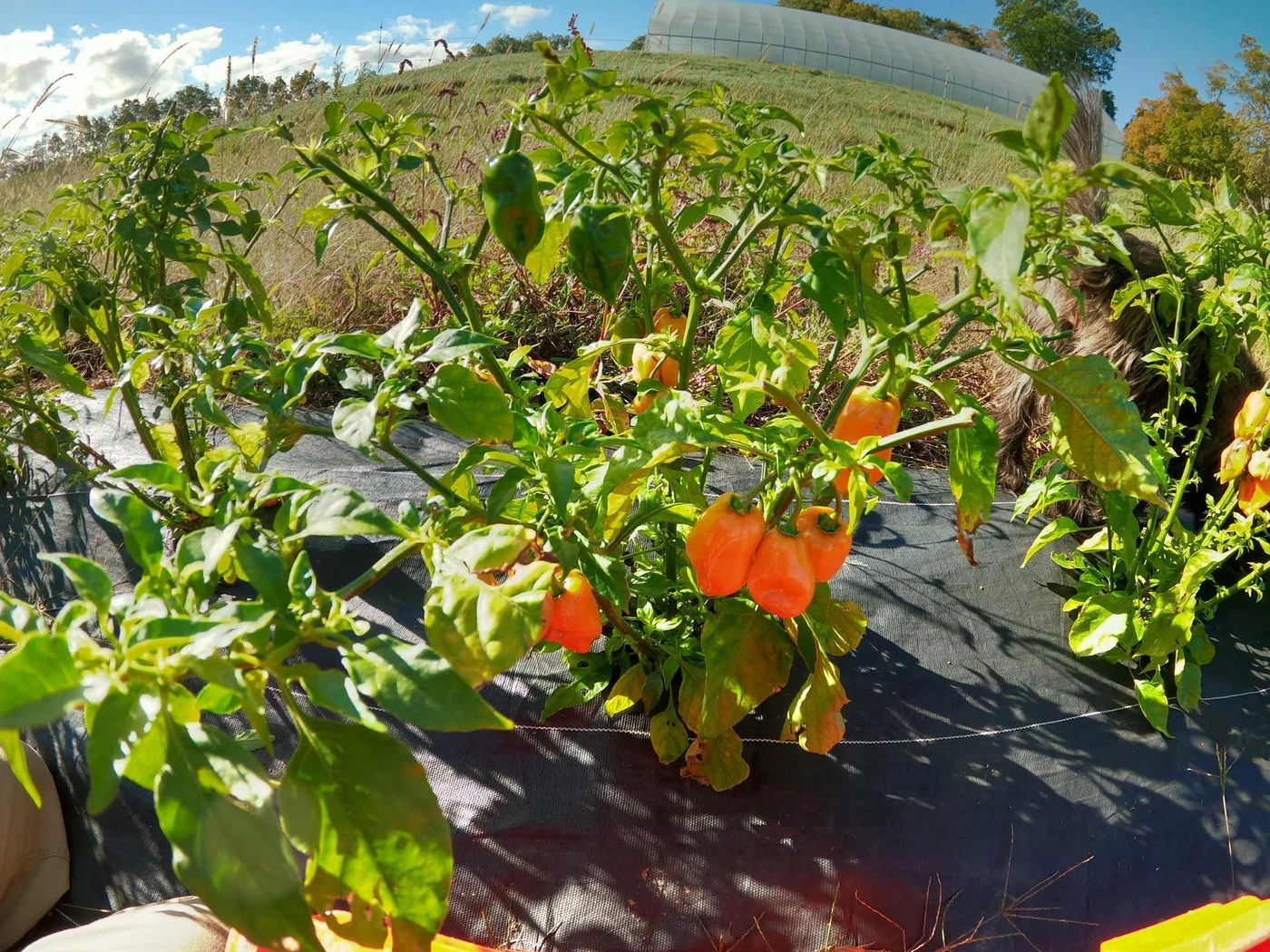 - Harvested two orange bin-sized bins of hot peppers (types: Hungarian hot wax, flaming flare, jalapeno, habanero).