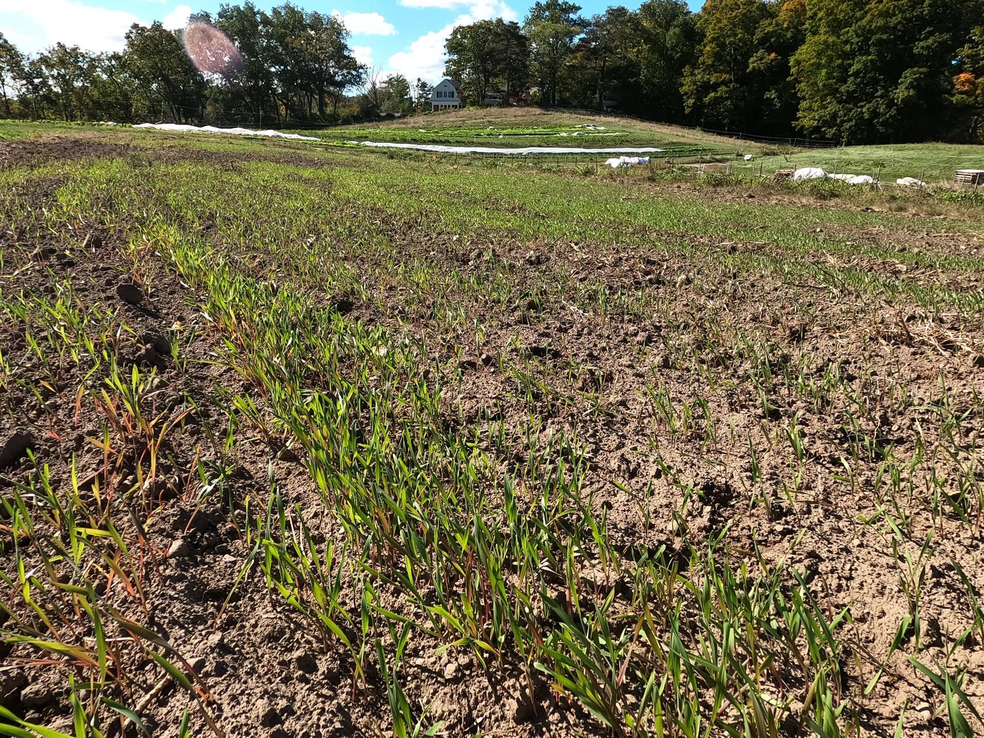 This morning before helping the harvest crew in the fields, Jamie and I moved the seed spreader attachment over to the dry fields. This was only one small part of a multi-step process to get all necessary equipment over there to sow winter rye seed as a cover crop throughout the winter.