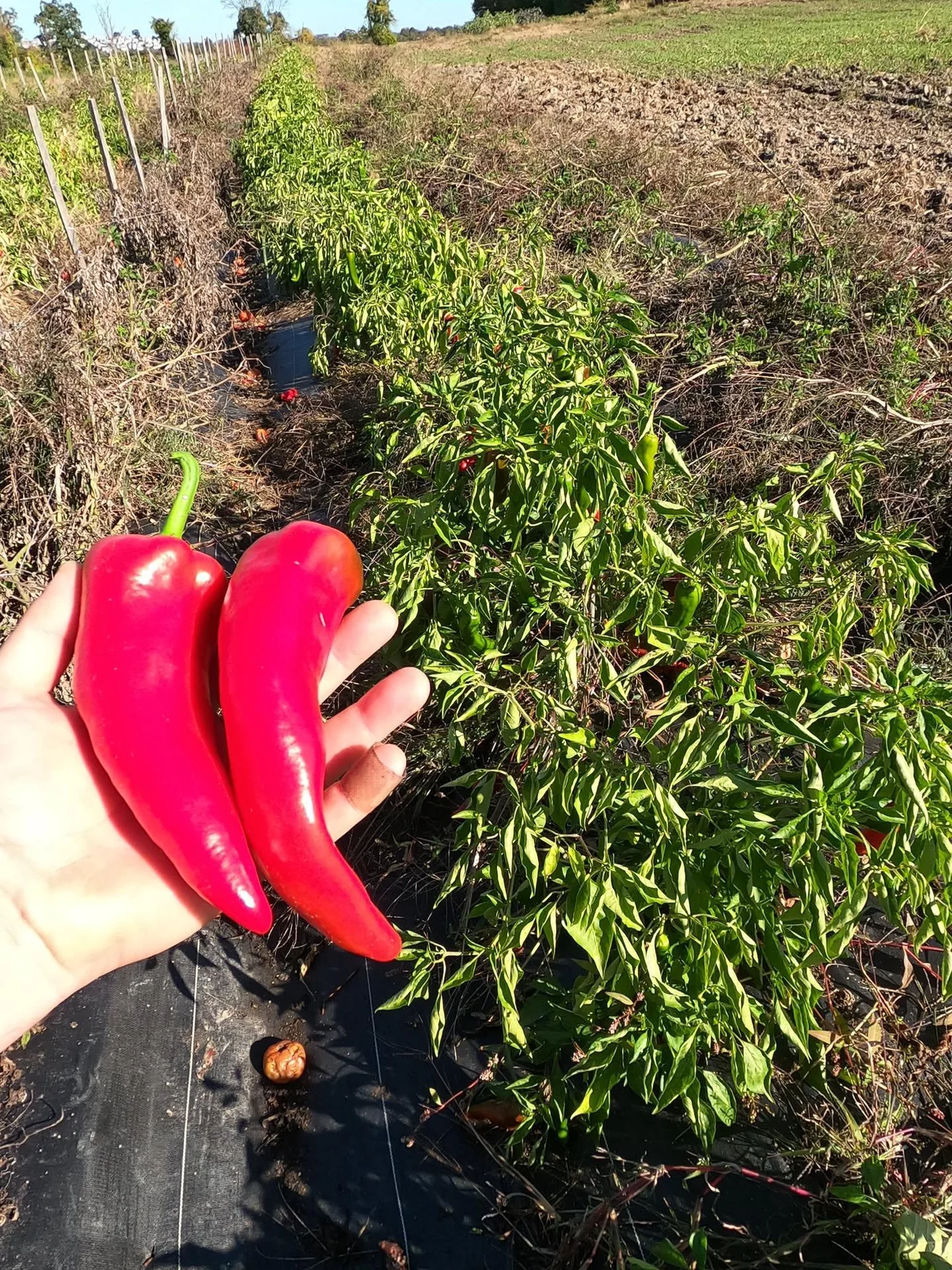- Harvested scallions (110+ bunches) and peppers (red, matured, greenhouse).