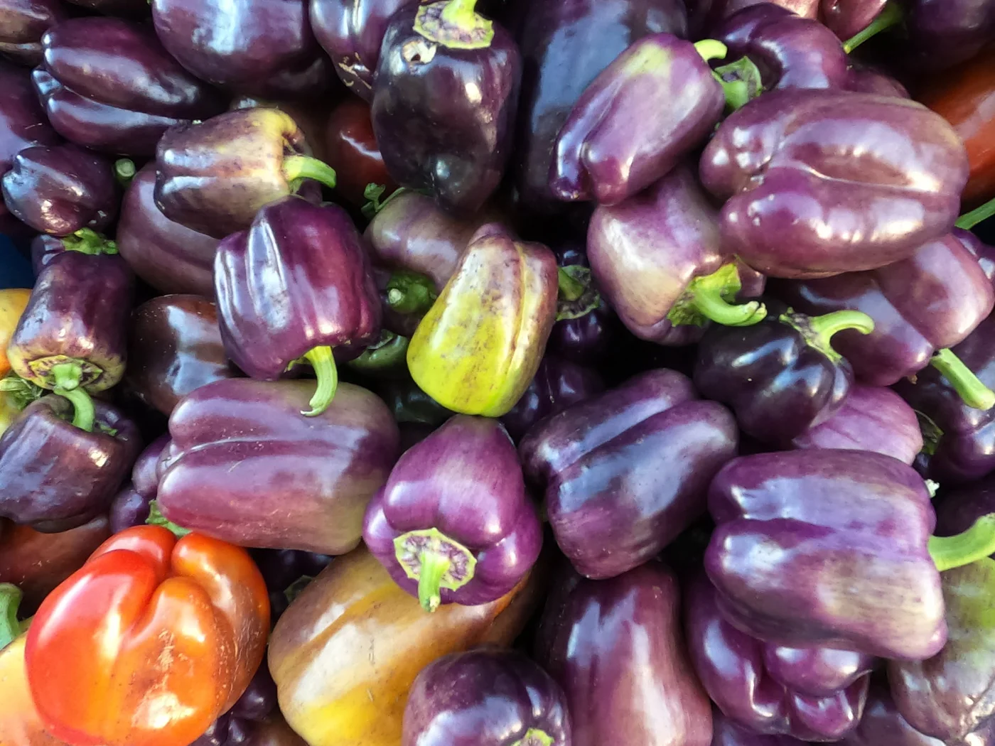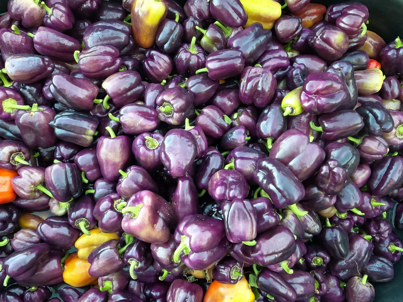- Purple bell peppers with streaks (not as sweet as Italian peppers).