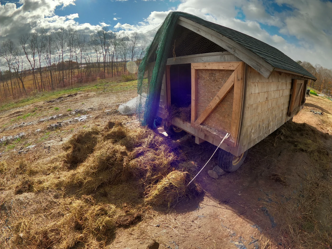 - Cleaned the chicken coop, removing straw, poop, and pee.
