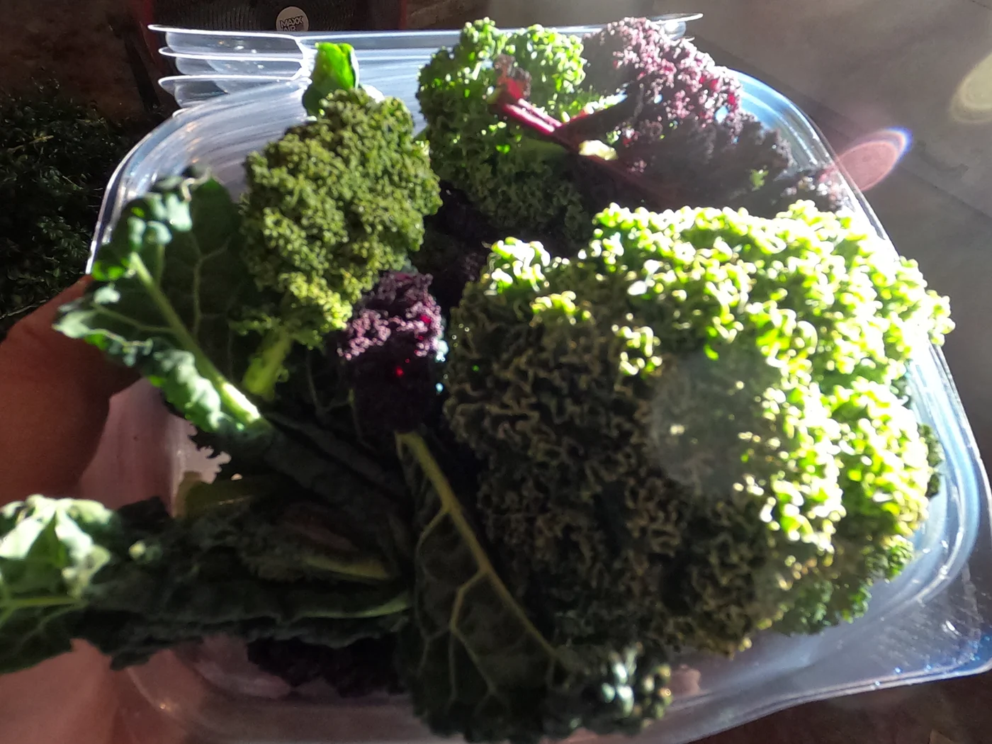 Boiling this down to a monetary figure is nice, but itās a number that doesnāt really capture the reasons for the work, specifically the worsening weather conditions and dwindling sellable produce moving into the winter. We did it because other tasks will wait and this last bit of produce wonāt. So with all that in mind, I ventured an unsolicited suggestion that since the stalks of kale are mostly done but there are still sweet and tender florets on the growing tips, we speed through a harvest of those as āloose leaf petite kaleāā¦and so we did: