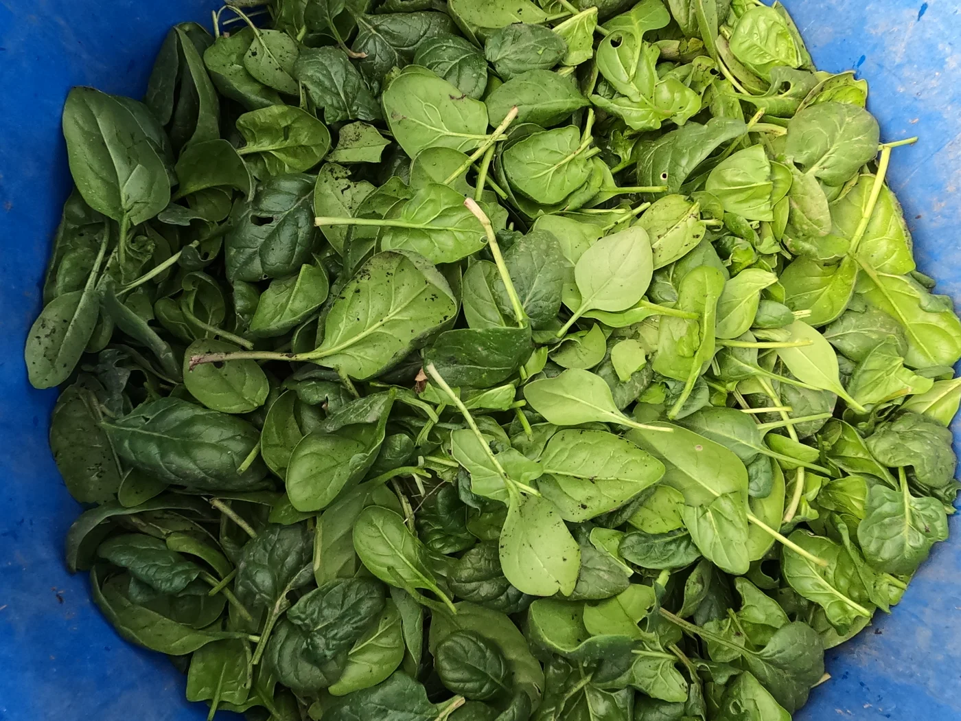 - Harvested and washed spinach.