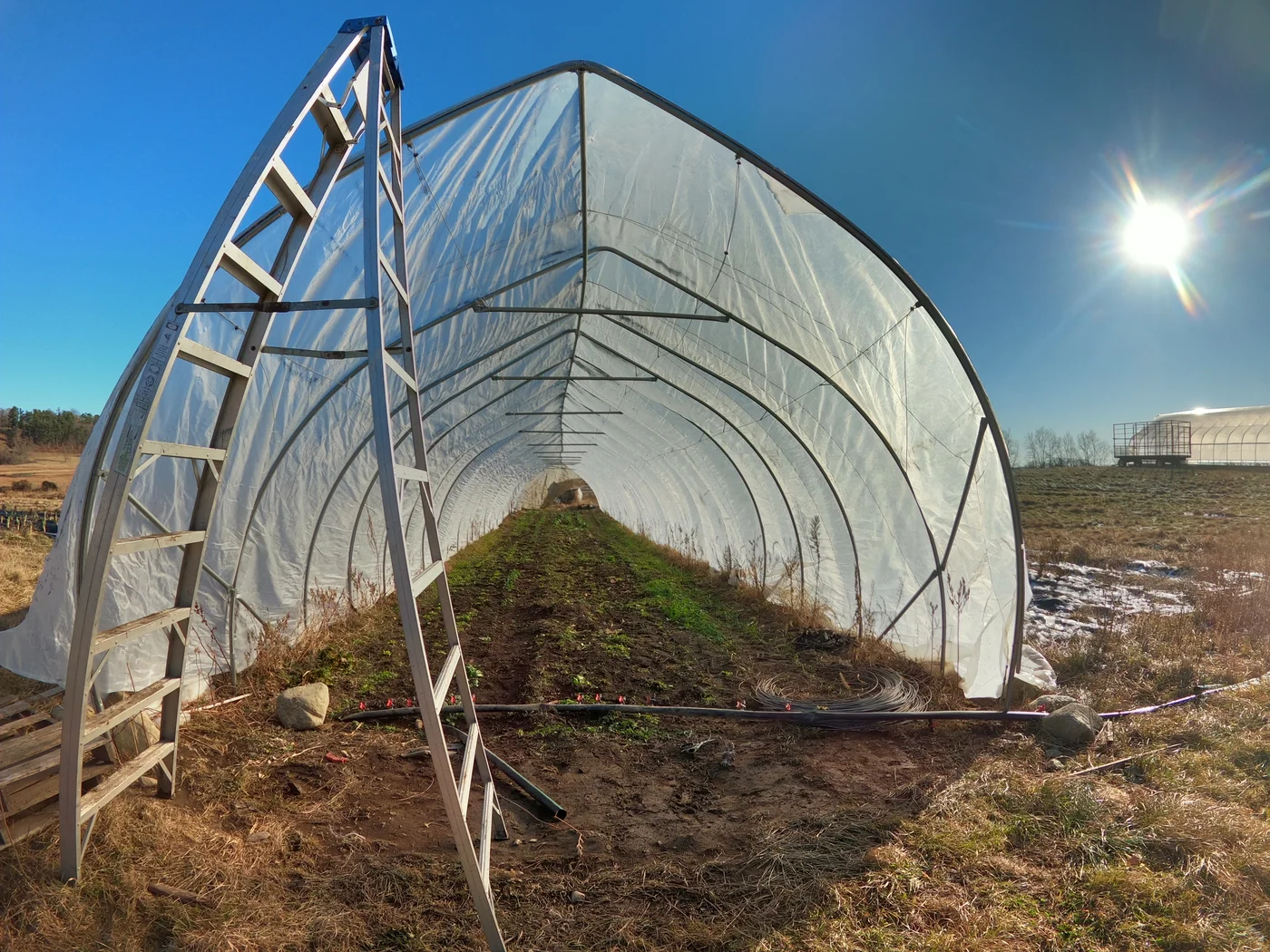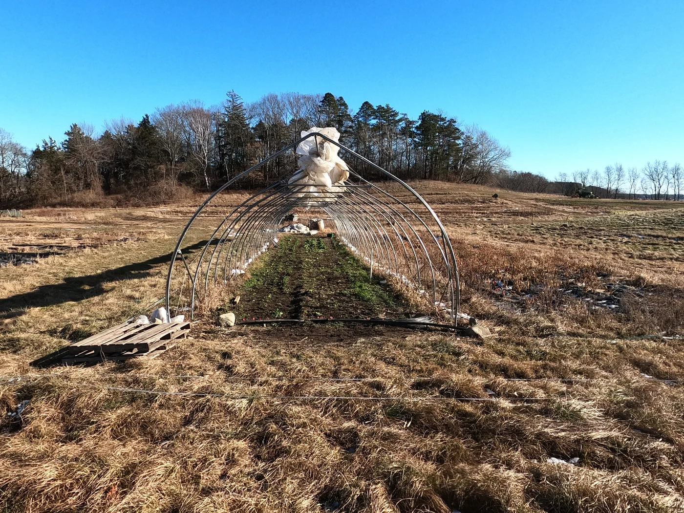- Disassembled the high tunnel (removing wiggle wire, fabric staples, row cover, and hoops).