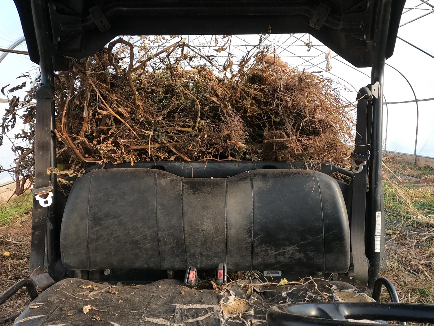 - Cleared the tomato greenhouse of dead plants, debris, and trellis materials (15–45 minutes).